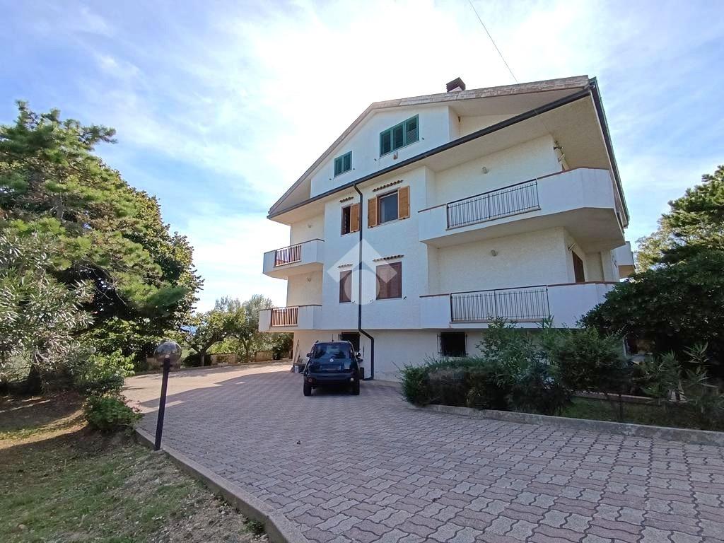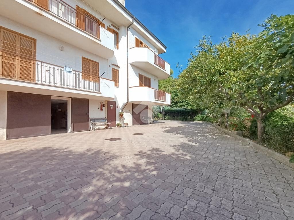 Al piano seminterrato, la soluzione dispone di due spaziosi garage e due fondaci ed è circondata da una corte esterna con giardino di circa 1000 mq, completamente recintata e con accesso tramite cancello elettrico. L'indipendente si caratterizza per la sua posizione tranquilla e panoramica, con splendida vista sulle colline circostanti e sul mare. A poca distanza dal centro storico di Atri e dai principali servizi.