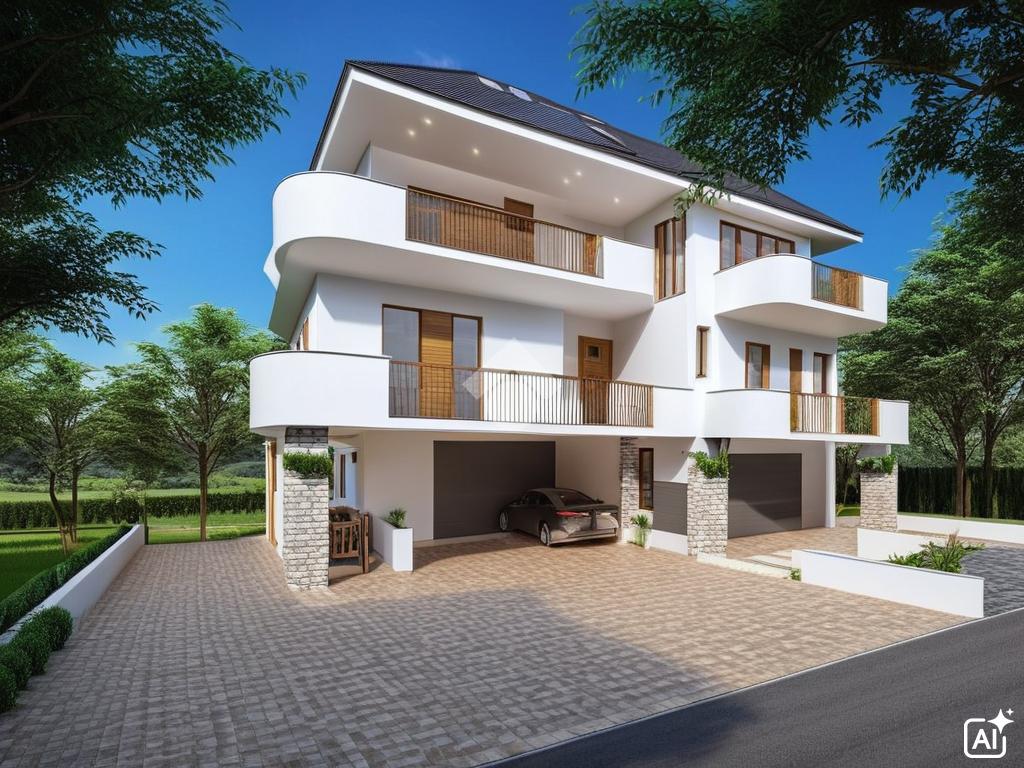 Le abitazioni poste al piano terra rialzato ed al piano primo, sono composte nella zona giorno da ingresso, tinello con retrocucina, soggiorno ed un bagno con doccia. Nella zona notte dispongono di un disimpegno, tre ampie camere da letto ed un bagno con vasca. Le proprietà, inoltre, dispongono ognuna di quattro balconi semiperimetrali. Al piano secondo sono presenti due appartamenti al grezzo, di circa 40 mq l'uno.