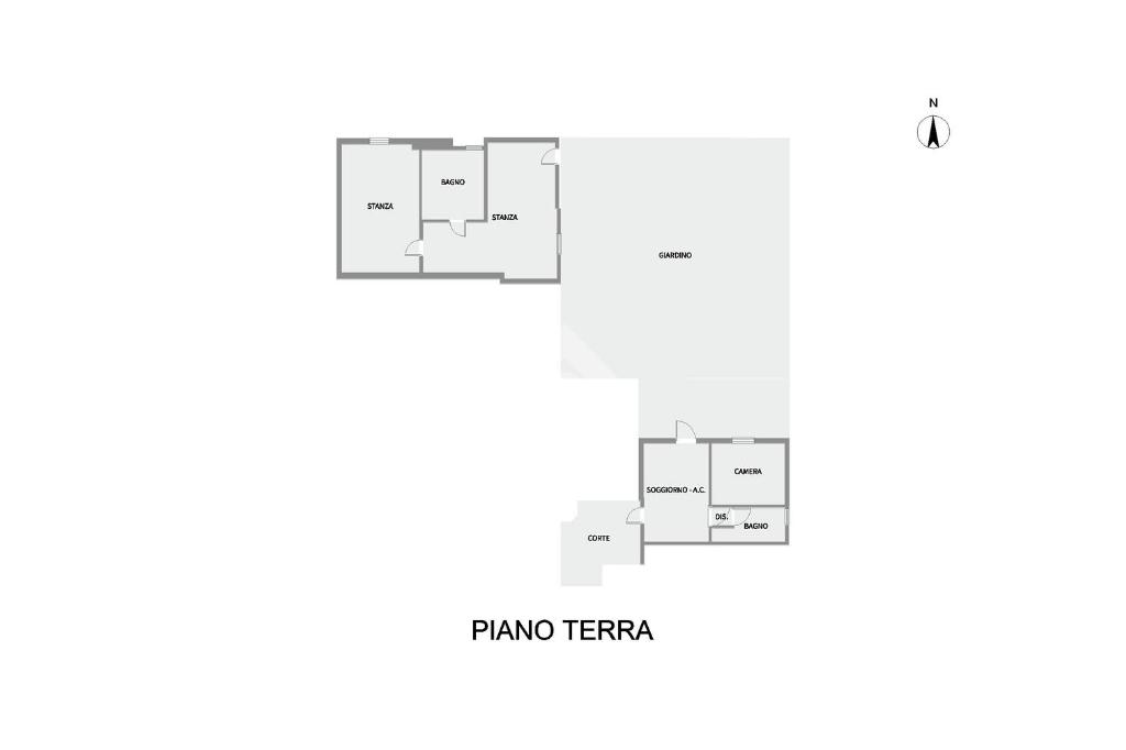 Una corte esterna privata e recintata introduce la proprietà, composta da un accogliente soggiorno con angolo cottura, un disimpegno, una spaziosa camera matrimoniale ed un bagno con doccia e vasca. La proprietà include una comoda dèpendance esterna, con accesso tramite il giardino, completa di due ulteriori camere ed un bagno con doccia. Annessi un terrazzo abitabile, tre posti auto ad uso esclusivo ed un giardino privato e recintato di circa 55 mq.