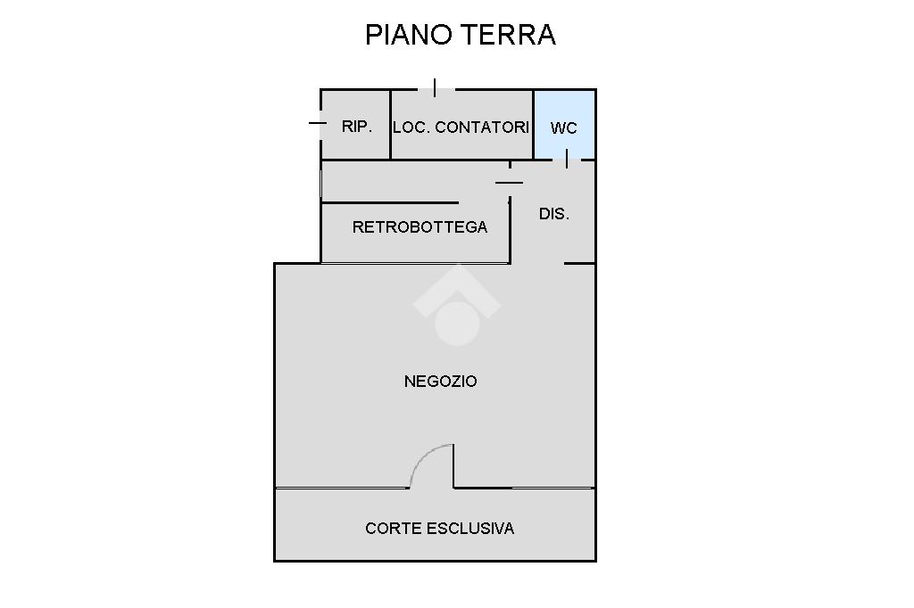 La soluzione, posta al piano terra, è costituita da un luminoso vano ad uso della clientela, da un retrobottega e da un servizio igienico.