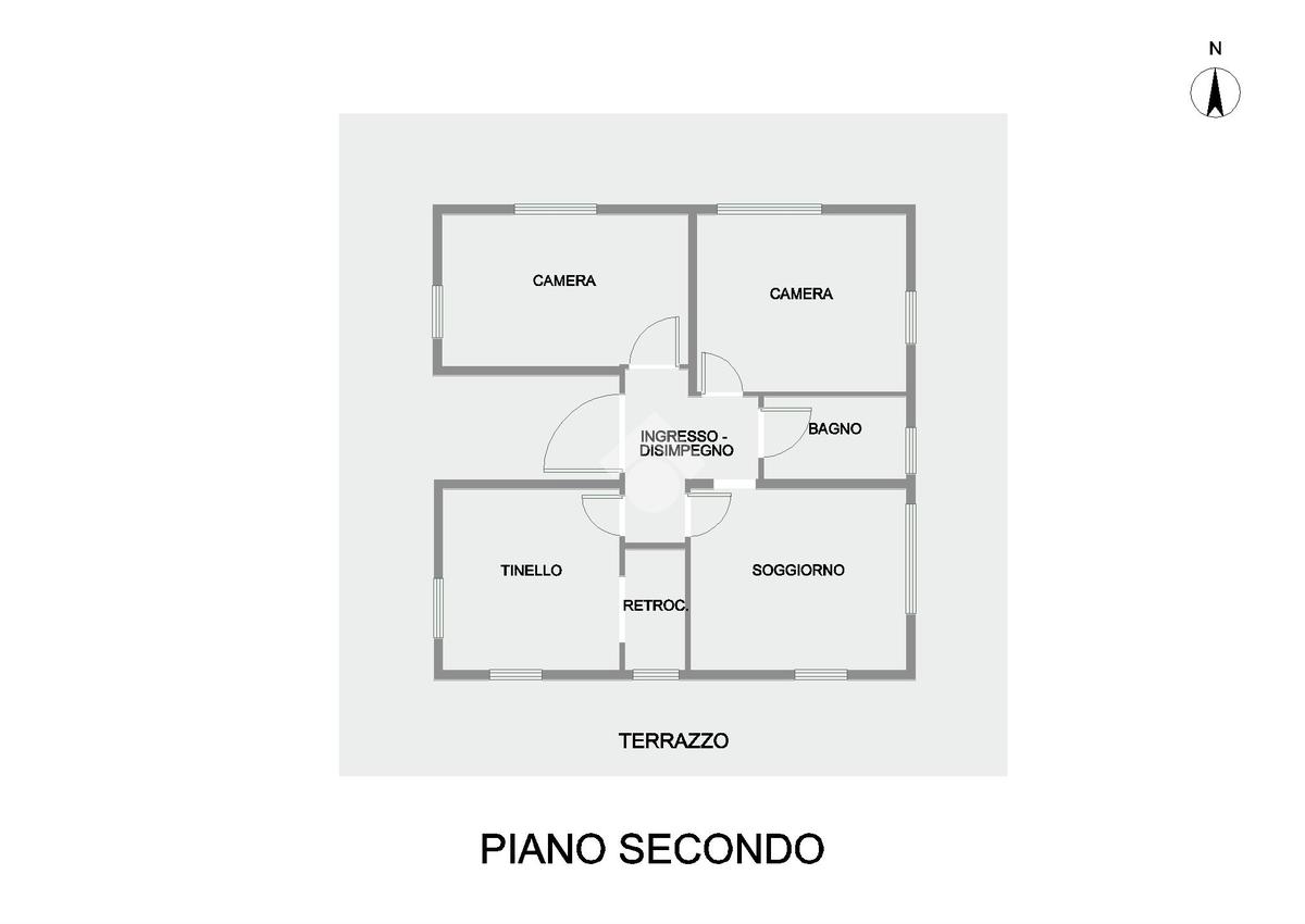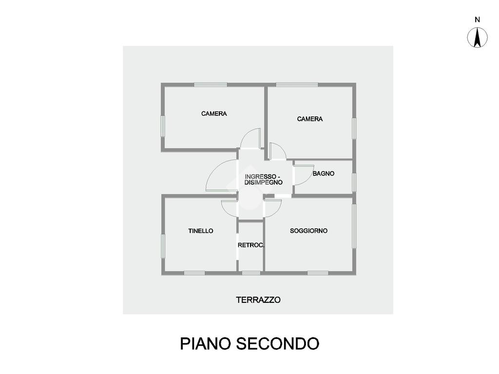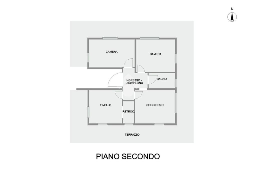 La proprietà, posta al piano secondo senza ascensore, è composta da un ingresso, un luminoso tinello ed un retrocucina. La zona notte è composta da due spaziose camere matrimoniali e da un bagno con doccia.